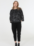 The Terra top showcases an innovative textured design featuring delicate baby feather eyelash detailing that catches light beautifully. Available in your choice of Pewter silver or Bronze metallic accents against a classic black foundation, this piece delivers visual interest without compromising comfort. The three-quarter sleeve silhouette offers versatile styling options, while the breathable polyester construction ensures all-day wearability. A soft interior lining protects your skin from the feather texture, creating a refined wearing experience. Crafted from 100% polyester for durability and easy care.
