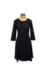 This sophisticated black dress exemplifies refined tailoring with its form-fitting silhouette and expertly placed structural seaming across the front and back. The 3/4 sleeves and knee-length hemline create a polished aesthetic that balances elegance with everyday wearability. Clean lines and precise construction deliver a flattering fit that transitions effortlessly from professional settings to evening wear, making it an indispensable addition to any discerning wardrobe.