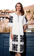 Featuring a playful fusion of black and white, this dress captures the essence of carefree summer style. The whimsical appliqué adds a touch of artistry, making it perfect for picnics, parties, or a stroll in the park.