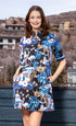 The Chatham Dress in Navy Pavilion Print features a deep navy base adorned with an intricate pavilion-inspired pattern. This sophisticated design offers a flattering silhouette that seamlessly blends classic elegance with contemporary style, making it perfect for refined occasions or polished everyday wear.