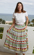 Introducing our fun Woodstock Skirt in a pattern you'll love! This skirt is an ankle length flounced skirt with an elastic waist and on seam pockets. Add a dash of vintage flair to your wardrobe and turn heads wherever you go!