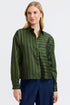 Marina combines classic stripes with a bold houndstooth accent beneath the collar, collar stand, and cuffs for a refined yet unexpected look. Its boxy silhouette and shorter length complement high-rise pants perfectly, while an oversized chest pocket adds a modern, clean finish. Crafted from luxurious cotton sateen, this shirt offers effortless style with a sophisticated edge.