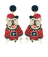 Add playful sparkle with these Glitter Bulldog w/Hat Earrings. Crafted from faux leather and metal, each 2 3/4" piece features a whimsical bulldog wearing a hat—perfect for showing off your fun, team-spirited side.