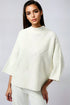 Discover the perfect blend of comfort and sophistication with the Joseph Ribkoff Vanilla top. This oversized pullover features a hip-length cut, a mock neck, and wide long sleeves that create a textured, elegant silhouette. Its plain knitted pattern offers subtle refinement, making it an excellent choice for casual winter settings.