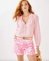 Introducing the Gretchen Short, a must-have wardrobe essential that combines a sleek silhouette with a double-weave fabric featuring a touch of stretch. Key features include a 5" inseam, high-rise straight fit, interior waistband constructed with elastic for a comfortable fit, and extended pockets for added convenience.