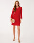 Sophisticated and timeless, the Leyland Shift features a classic straight silhouette in bold red. Three jeweled bow accents at the neckline and subtle sleeve ties add a touch of sparkle and charm. Perfect for cocktail parties or holiday gatherings, this polished dress combines elegance with effortless Lilly flair.