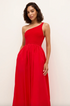 The Tobie Dress stands out as a striking and refined long gown featuring a distinctive one-shoulder silhouette and a vivid red color. Designed for those who desire a polished yet impactful appearance, this dress is an excellent choice for formal gatherings and evening affairs. It seamlessly combines contemporary style with classic elegance.Slip-on silhouette