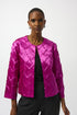 Discover the refined elegance of Joseph Ribkoff with this textured satin jacket designed for a polished look. Its collarless, regular fit silhouette features long, straight sleeves and a cropped length, striking the perfect balance between formal sophistication and casual ease. The understated plain pattern makes it versatile for business settings or evening events, offering a seamless transition from day to night wear. Elevate your wardrobe with this expert blend of style and comfort.