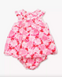It's never too early to treat your little one to a Lilly. Our Baby Paloma Bubble Dress features ruffle sleeves, top-applied lace details, and a bright print--on both the top and the bloomers--to create one adorable outfit. Find yourself a fashion piece in a matching print for some mommy-and-me fun. Infant bubble dress with ruffle sleeves, top-applied lace details and matching bloomers.Â