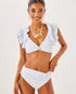 - Bikini top with ruffle details at the shoulders and a twist at the center front