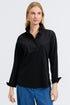 This pullover features a standout ruffled collar inspired by our Tammy Tank, reimagined in a long-sleeve silhouette crafted from breathable stretch cotton. The V-neck is detailed with a concealed button, allowing you to style it open or closed. Slit cuffs provide a relaxed vibe and ease when rolling up sleeves, while the flattering cut and side slits ensure a comfortable, elegant drape.