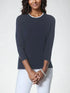 J'envie Sport I 3/4 Sleeve Bari Slit Cuff Top, crafted from our exclusive Stolen Softness™️ yarn blend. Its relaxed fit gently contours the body, balancing comfort with polished style. The Navy/White version features a layered neckline for added depth, while subtle slit cuffs with delicate buttons enhance its refined appeal. Perfectly suited for coastal-inspired weekend escapes, this top offers a versatile, elegant touch to your everyday wardrobe.