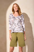 This top is the perfect blend of versatility and personality - effortlessly transform your look with its flattering v-neckline which can be reversed for a classic crew neckline. Made with soft hacci fabric, it feels amazing on your skin and the eye-catching pattern adds a playful touch to any outfit. Plus, side slits provide extra comfort and a relaxed silhouette.
